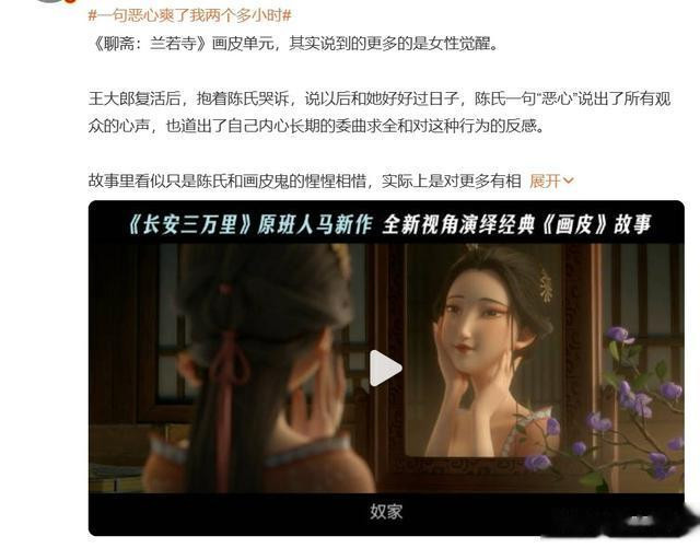 在当今信息爆炸的时代,网络上的各种评价如同潮水般向我们涌来。近日,一句“一句恶心爽了我两个多小时”在网络上引发了广泛的关注,众多网友纷纷分享自己对于电影《聊斋:兰若寺》的独特感受。